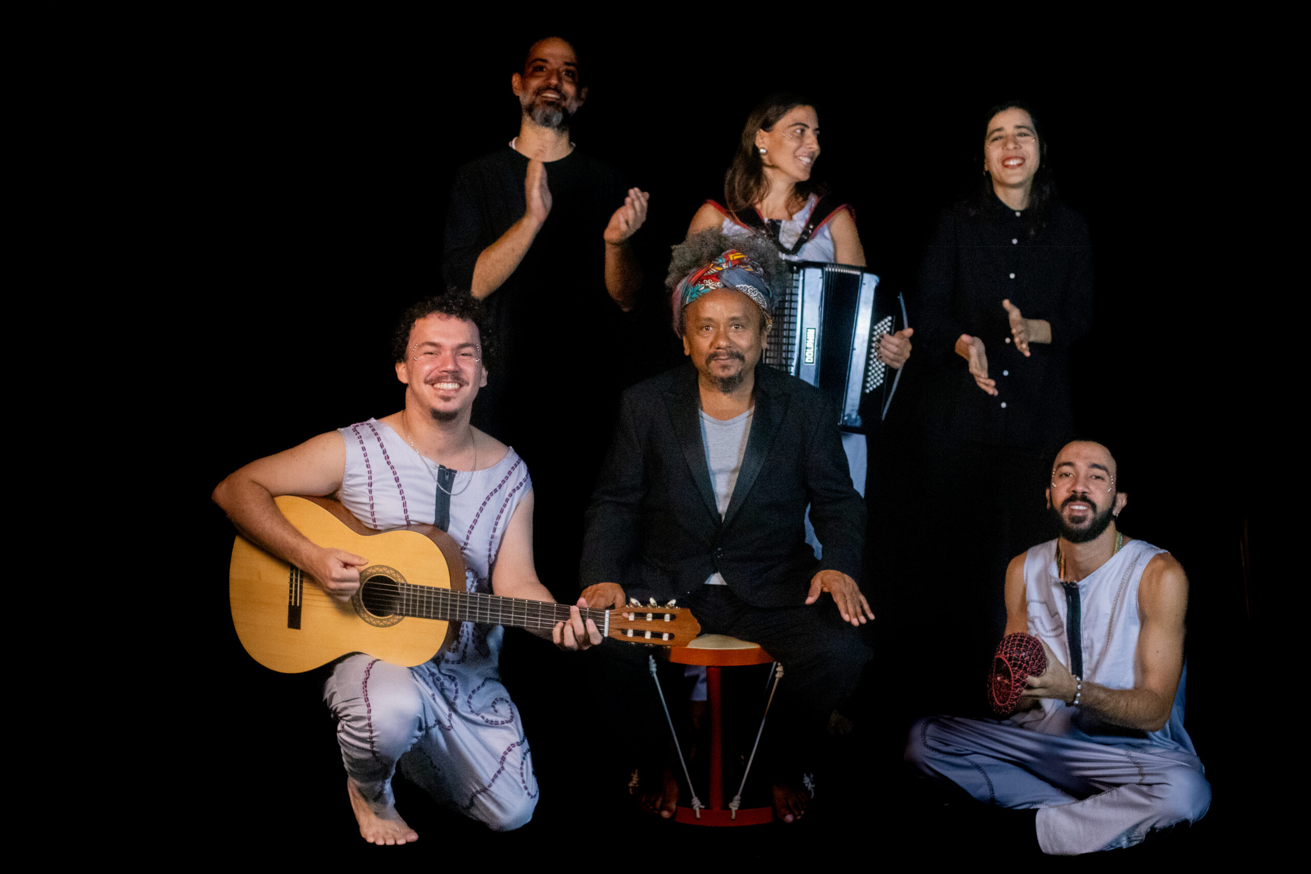Em seu segundo trabalho com o teatro musical, João Milet Meirelles trouxe para ‘Viva o Povo Brasileiro (de Naê a Dafé)’ uma construção coletiva com referências da música baiana contemporânea e da tradicionalidade. “Existe também um apontamento para o futuro. Tem muita percussão, cordas, sanfona, piano. São três músicos e um elenco também muito competente musicalmente. Tem essa diversidade como uma linha que vai conduzindo tudo. É uma construção coletiva com o processo de experimentação”, define João Milet Meirelles.
